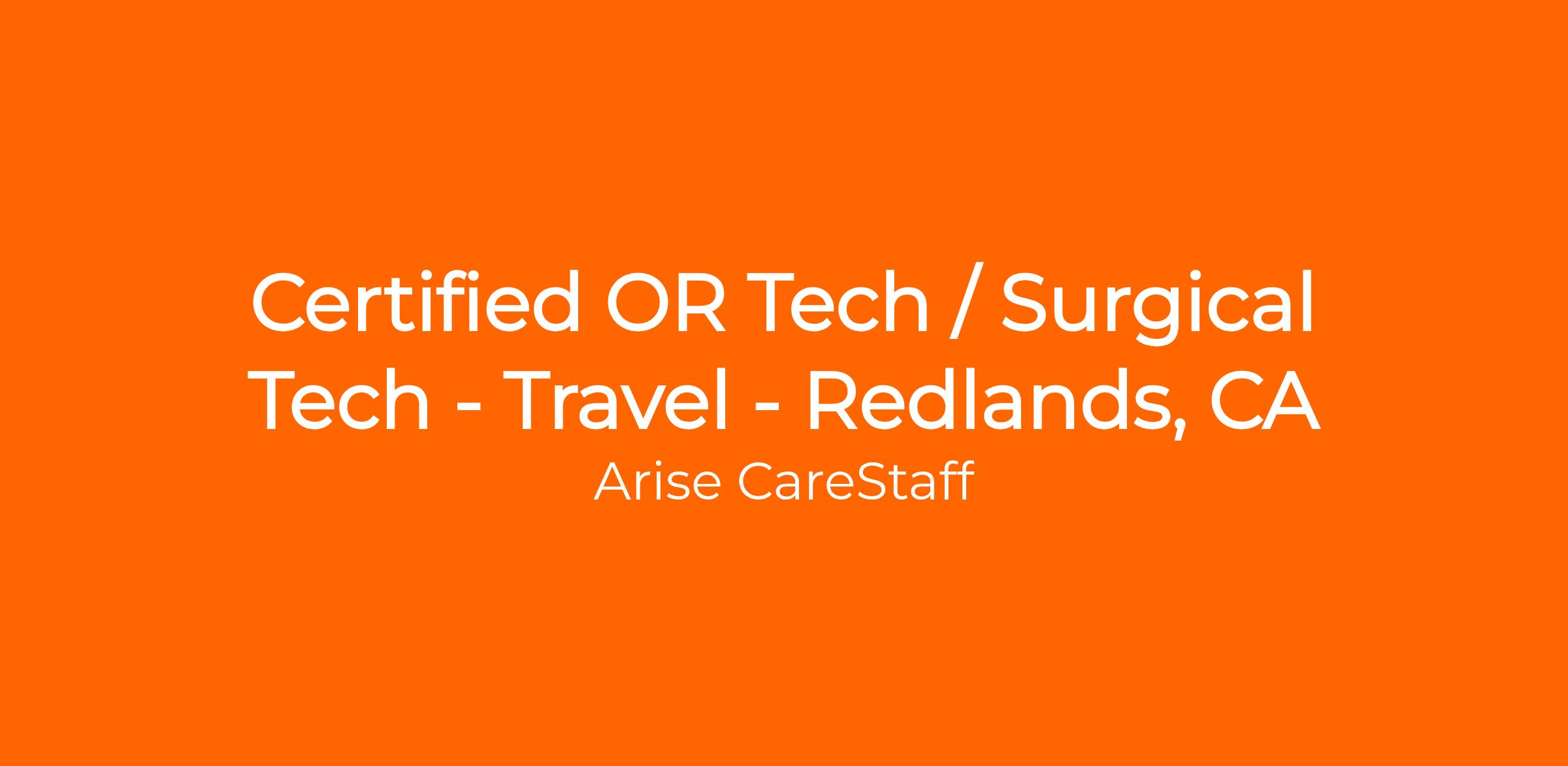 Arise CareStaff is looking for an experienced OR Tech Surgical Technician to work for our client healthcare facility in Redlands, CA