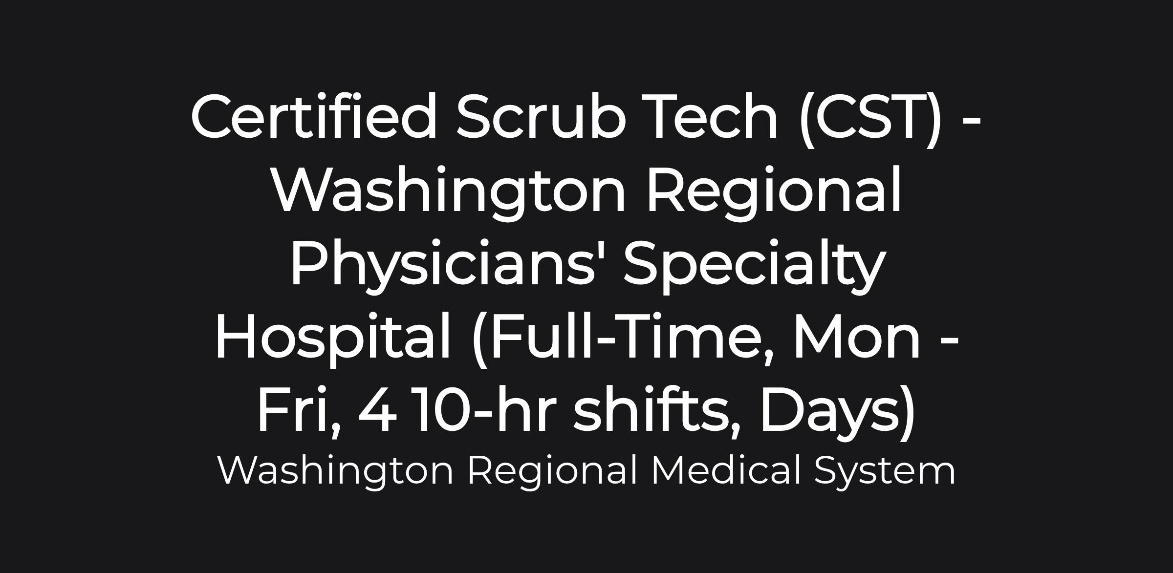 Our mission is to improve the health of people in the communities we serve through compassionate, high-quality care, prevention, and wellness education. Washington Regional Medical System is a community-owned, locally governed, non-profit health care system located in Northwest Arkansas in the heart of Fayetteville, which is consistently ranked among the Best Places to live in the country. Our 425-bed medical center has been named the #1 hospital in Arkansas for five consecutive years by U.S. News & World Report. We employ 3,400+ team members and serve the region with over 40 clinic locations, the region’s only Level II trauma center, and five Centers of Excellence - the Washington Regional J.B. Hunt Transport Services Neuroscience Institute; Washington Regional Walker Heart Institute; Washington Regional Women and Infants Center; Washington Regional Total Joint Center; and Washington Regional Pat Walker Center for Seniors.