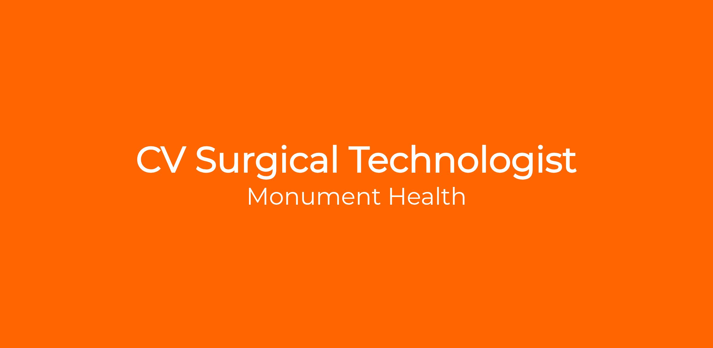 It starts with heart. That is what you will do each day. As a Surgical Technician at Monument Health, you will be valued as an essential team member providing compassionate patient focused care. You will discover a culture of teamwork, professionalism, mutual respect, and— most importantly— a life-changing career. You will make a difference. Every day.