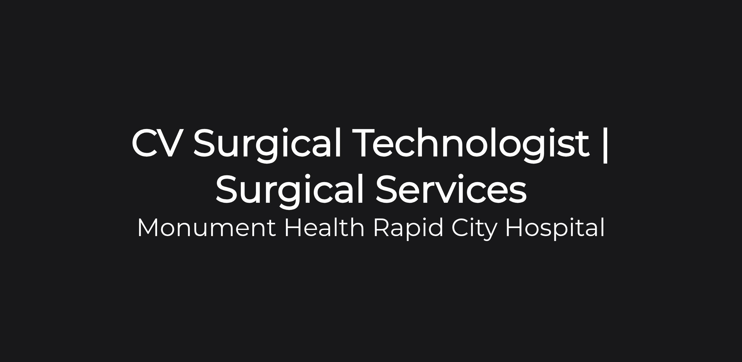 It starts with heart. That is what you will do each day. As a Surgical Technician at Monument Health, you will be valued as an essential team member providing compassionate patient focused care. You will discover a culture of teamwork, professionalism, mutual respect, and— most importantly— a life-changing career. You will make a difference. Every day.