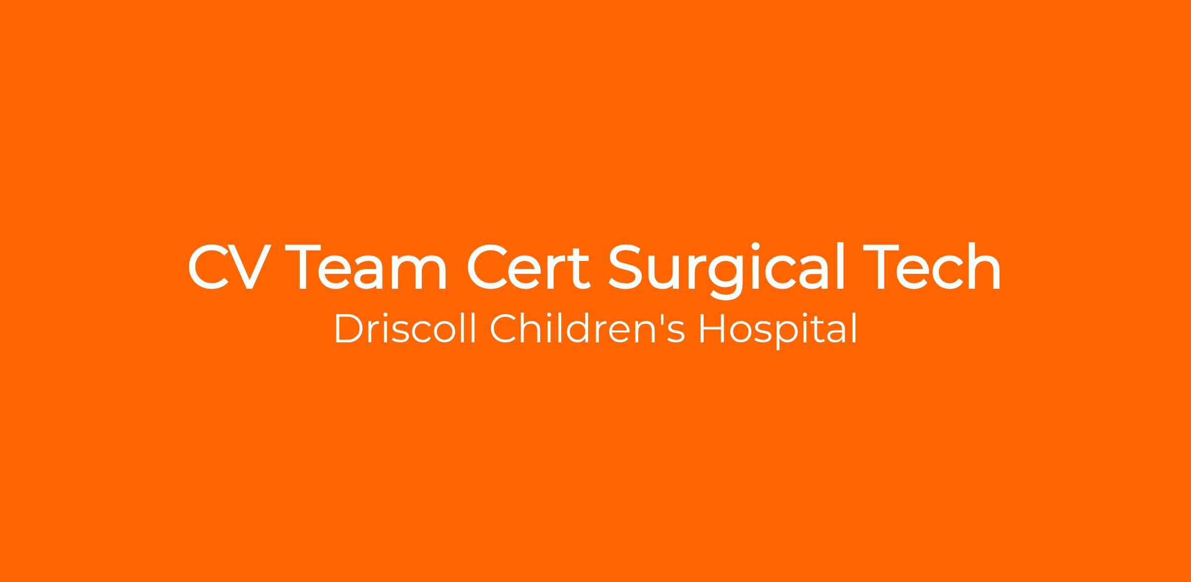 A cv certified technologist assists the surgeon and other professional and technical personnel in carrying out Operating Room and Surgical functions. Assisted care is administered under the direct supervision of the professional operating room nurse. The patient care population includes infants, children, adolescents, and adults in the cardiac service line.