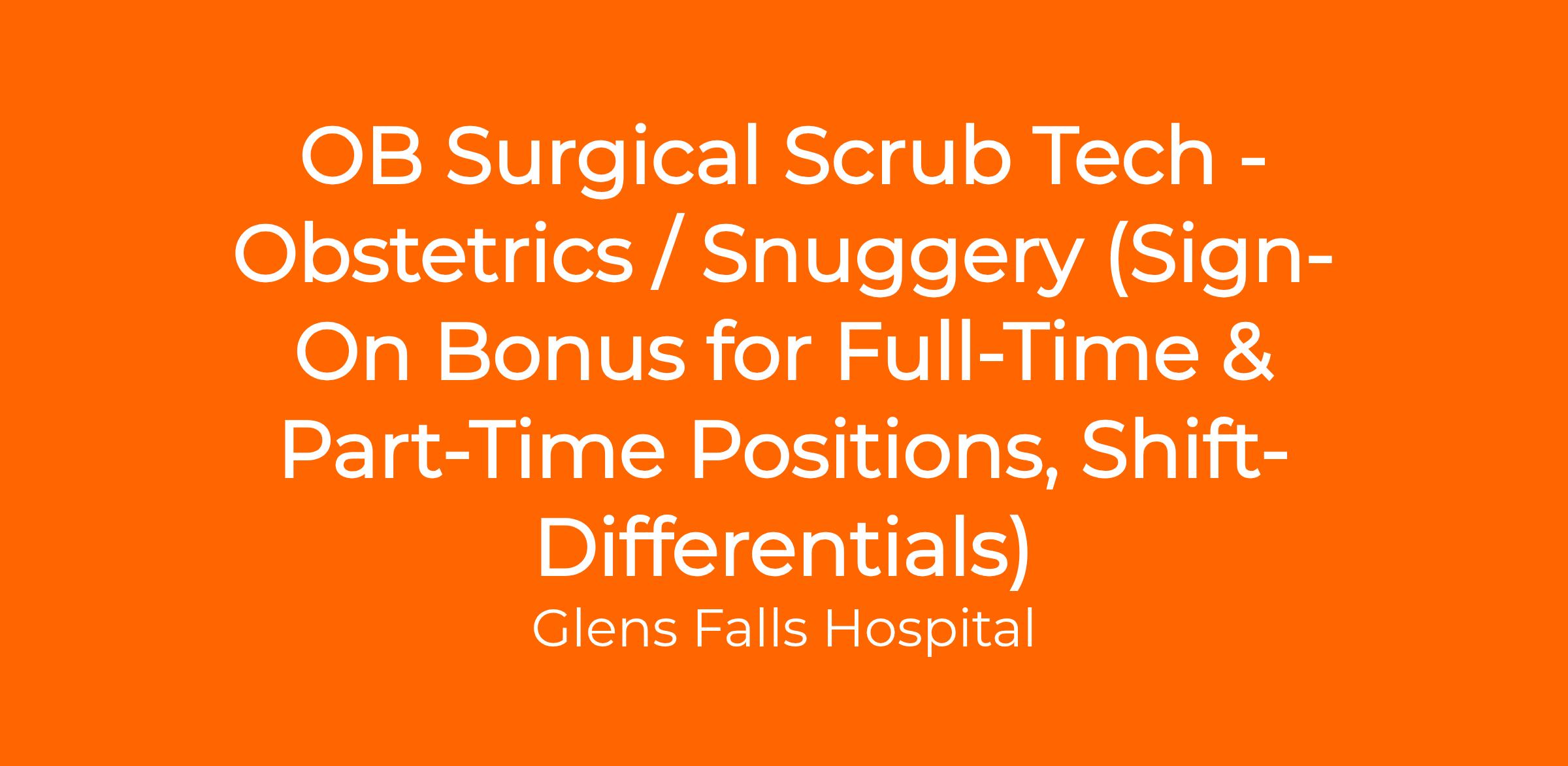 As a member of the healthcare team and under the direction of a Registered Nurse, the OB Technician assists nursing personnel in the delivery of patient care in the Snuggery Suite, taking into account the patient's special or age-related needs. The OB Technician serves as the scrub technician in Cesarean Sections and selected OB/GYN procedures. This position assumes responsibility for a safe environment and appropriate utilization of resources; directs and performs cleaning, maintenance and processing of instruments and equipment; and restocks and prepares rooms within the Unit. The OB Tech also provides rapid response to patient/family needs and requests.