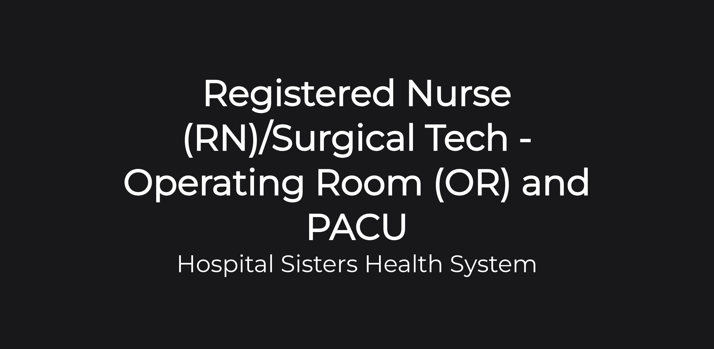 Benefits: HSHS provides a benefits package designed to support the overall well-being of our colleagues including their physical, emotional, financial, spiritual, and work health. Colleagues budgeted to work at least 32 hours per pay period are eligible for HSHS benefits.