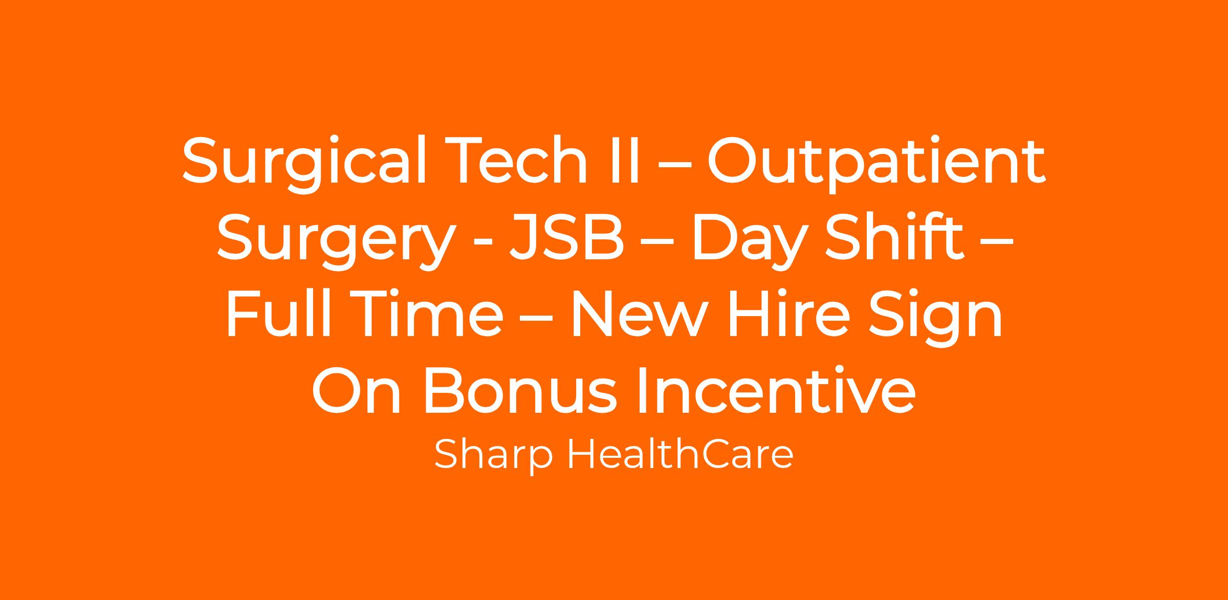 Sharp HealthCare is an equal opportunity/affirmative action employer. All qualified applicants will receive consideration for employment without regard to race, religion, color, national origin, gender, gender identity, sexual orientation, age, status as a protected veteran, among other things, or status as a qualified individual with disability or any other protected class