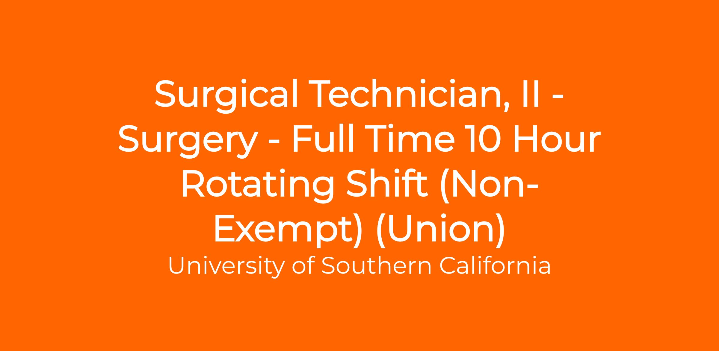 - Req 1 year One-year experience as a Surgical Technician or as a Surgical Technician intern required. *Surgical Technician intern experience must be paid and completed at Keck Medicine of USC.
