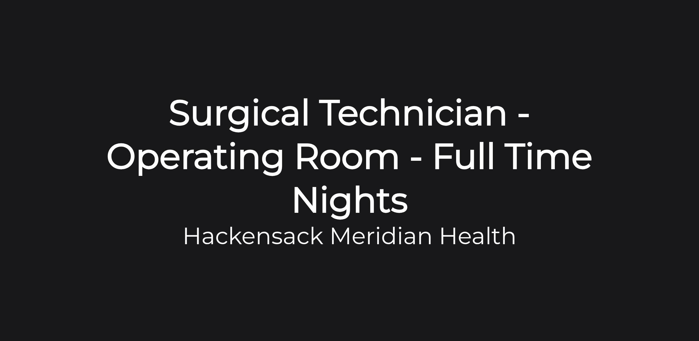 The Surgical Technologist I (ST) at Hackensack Meridian Health (HMH) performs assigned duties under the direction of the Registered Nurse (RN). Demonstrates positive behavior and the ability to implement a plan of care. Duties require detailed knowledge of surgical instruments and prescribed procedures to provide surgeons with the appropriate sterile instruments and supplies throughout the course of surgery.