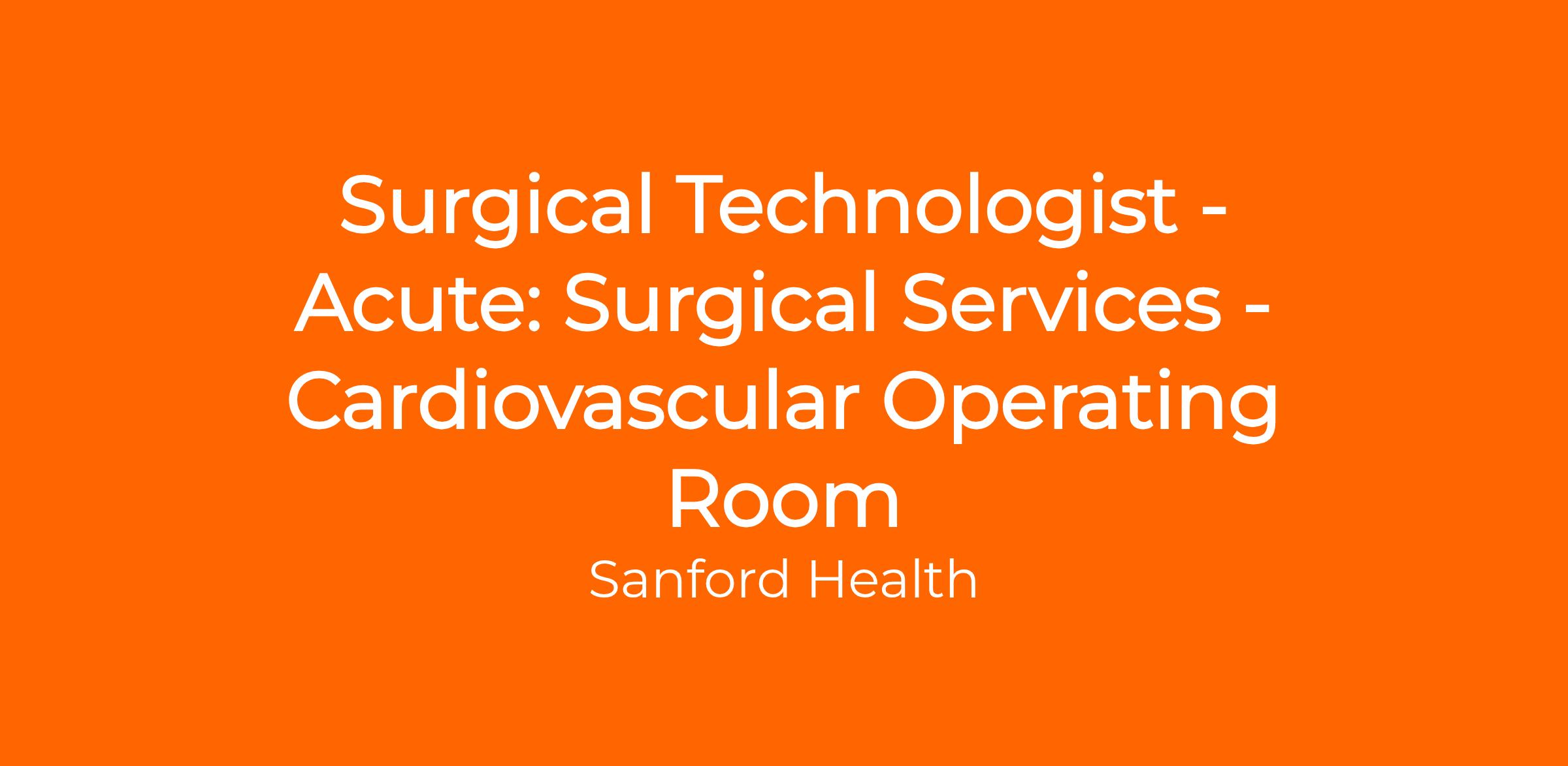 The Surgical Technologist-CVOR-Acute is a skilled member of the allied healthcare team who provides clinical support and/or operating room assistance under the supervision of a licensed Cardiovascular Surgeon. The Surgical Technologist-CVOR works with a wide variety of healthcare professionals to deliver direct patient care before, during, and after cardiovascular procedures or surgery. The Surgical Technologist-CVOR will function in the scrub role and will monitor and maintain aseptic technique, equipment, supplies and instruments. Provides a safe, efficient environment for the surgical patient and staff by working in accordance with Marshfield Clinic Health System (MCHS) standards of practice and by adhering to MCHS policies/procedures, universal precautions, and sterile technique