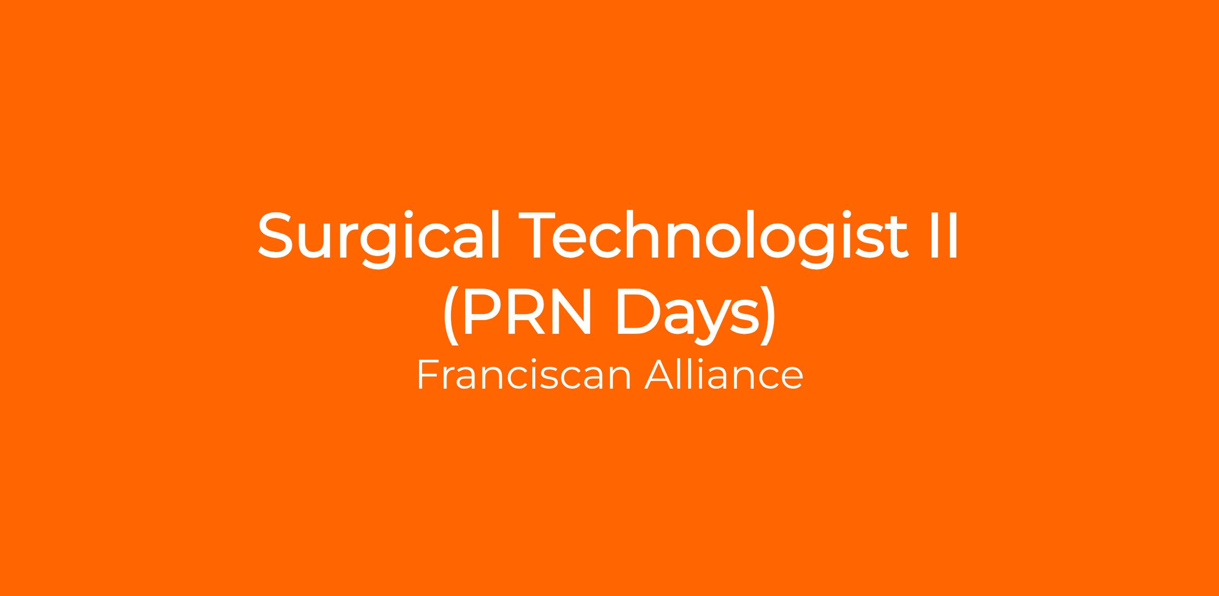 The Surgical Technologist II performs various tasks supporting perioperative services within the Franciscan team. This position assists multiple disciplines within the operating room by preparing patients and equipment for procedures, and maintaining environmental standards. This position, also, provides technical assistance to surgeons by anticipating procedures and equipment. The Surgical Technologist measures and passes medications, hemostatic agents, and other solutions.