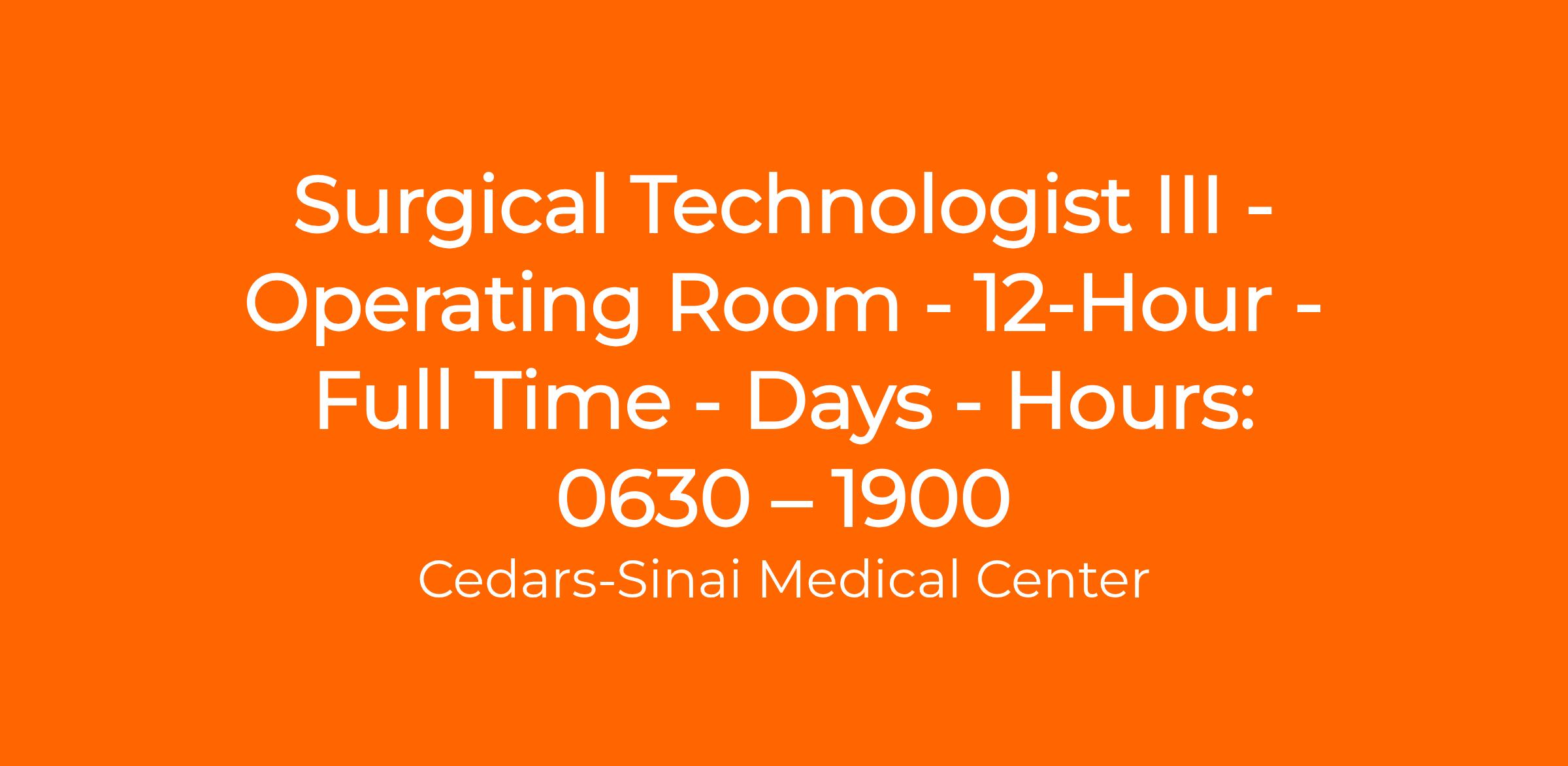 Under the general direction of a licensed caregiver, the Surgical Technologist III assists in surgical operations. The Surgical Technologist III is assigned technical duties, prepares operating rooms, arranges equipment, assists with procedures, and has the responsibility to ensure smooth teamwork through the application of knowledge and effective communication with registered nurses, patients, surgeons, anesthesiologists, ancillary personnel, and other health care team members. The Surgical Technician III provides care consistent with CSMC and accrediting bodies' standards. The Surgical Technician III maintains competency skills including the ability to deliver care to special patient populations and patients with diverse cultural backgrounds. The Surgical Technician III identifies the ability of the adolescent, adult, and geriatric patients to follow instructions and give consent.